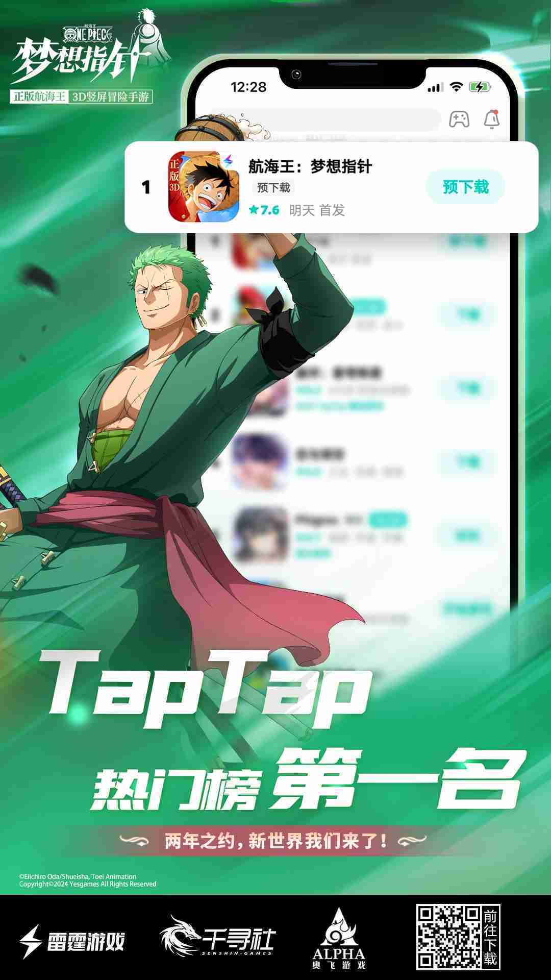 《航海王::::梦想指针》登顶App Store免费榜,,,公测福利汇总!!!!