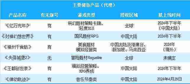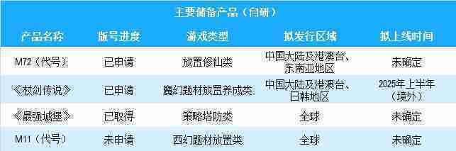 公司有多款储备产品,,,涵盖放置类、、、、策略类、、RPG、、、Roguelike等多元化游戏品类,,储备的主要自研和代理产品如下::::