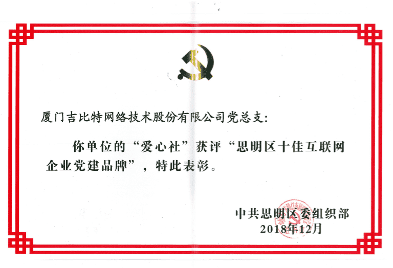经初审评选、、、网络评选和专家评审等环节,,,"厦门亚星管理网络技术股份有限公司党总支-爱心社" 从全区28个参评党建品牌中脱颖而出,,获评"思明区十佳互联网企业党建品牌"。。。。